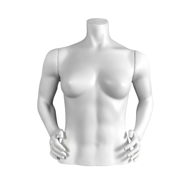 El busto Nike deportivo media cintura con brazos imantados es perfecto para destacar tus prendas deportivas. Fabricado en fibra de vidrio de alta calidad, está disponible en colores blanco y negro. Ideal para tiendas de ropa deportiva, ferias de moda, eventos y exposiciones. Ofrecemos opciones de alquiler y venta sostenible, con una base de apoyo personalizable y un innovador sistema de brazos imantados para una presentación dinámica y versátil.