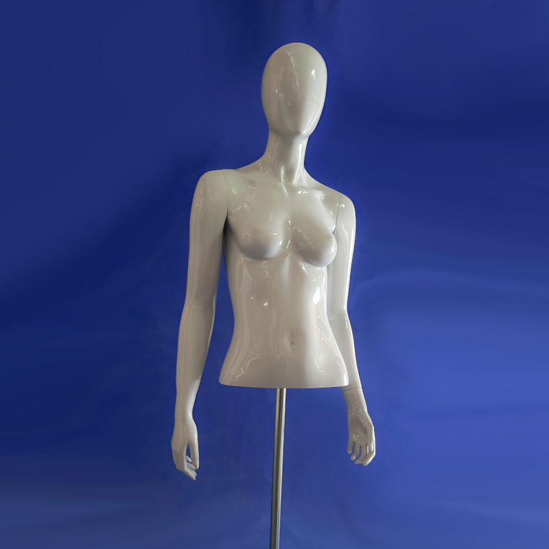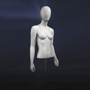 Nuestro busto de mujer con brazos y cabeza es perfecto para destacar tus prendas. Fabricado en fibra de vidrio, está disponible en color blanco o gris. Ideal para tiendas de ropa, ferias de moda, eventos y exposiciones. Ofrecemos opciones de alquiler y venta sostenible para adaptarse a tus necesidades. Con base de apoyo personalizable para una presentación única.